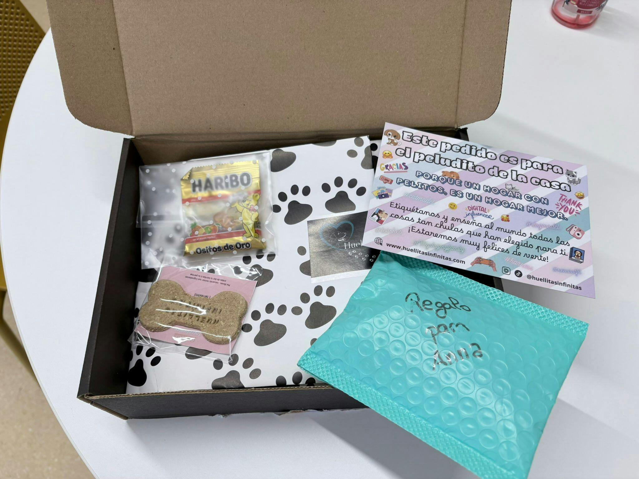 Descubrí Huellitas Infinitas por casualidad, quería comprar una botella útil limpia pipí y la encontré en Amazon. La sorpresa fue cuando recibí el paquete, ya ví que era especial, el envoltorio, la pegatina de una huellita, pequeños detalles. Al abrir, una tarjeta y por detrás un mensaje escrito a mano, que ilusión, de verdad, se habían tornado la molestia de escribir a mano y personalizarlo. Acto seguido me puse en Instagram y la web, y “voilà” primera compra hecha, un arnés ajustable, con la correa y la bolsita a conjunto. Recibí el paquete súper súper rápido. Una fiesta abrir el paquete y descubrir todos los detalles y todo el amor que ponen en su trabajo. Os muestro fotos. Muchas gracias por todo y hasta pronto.