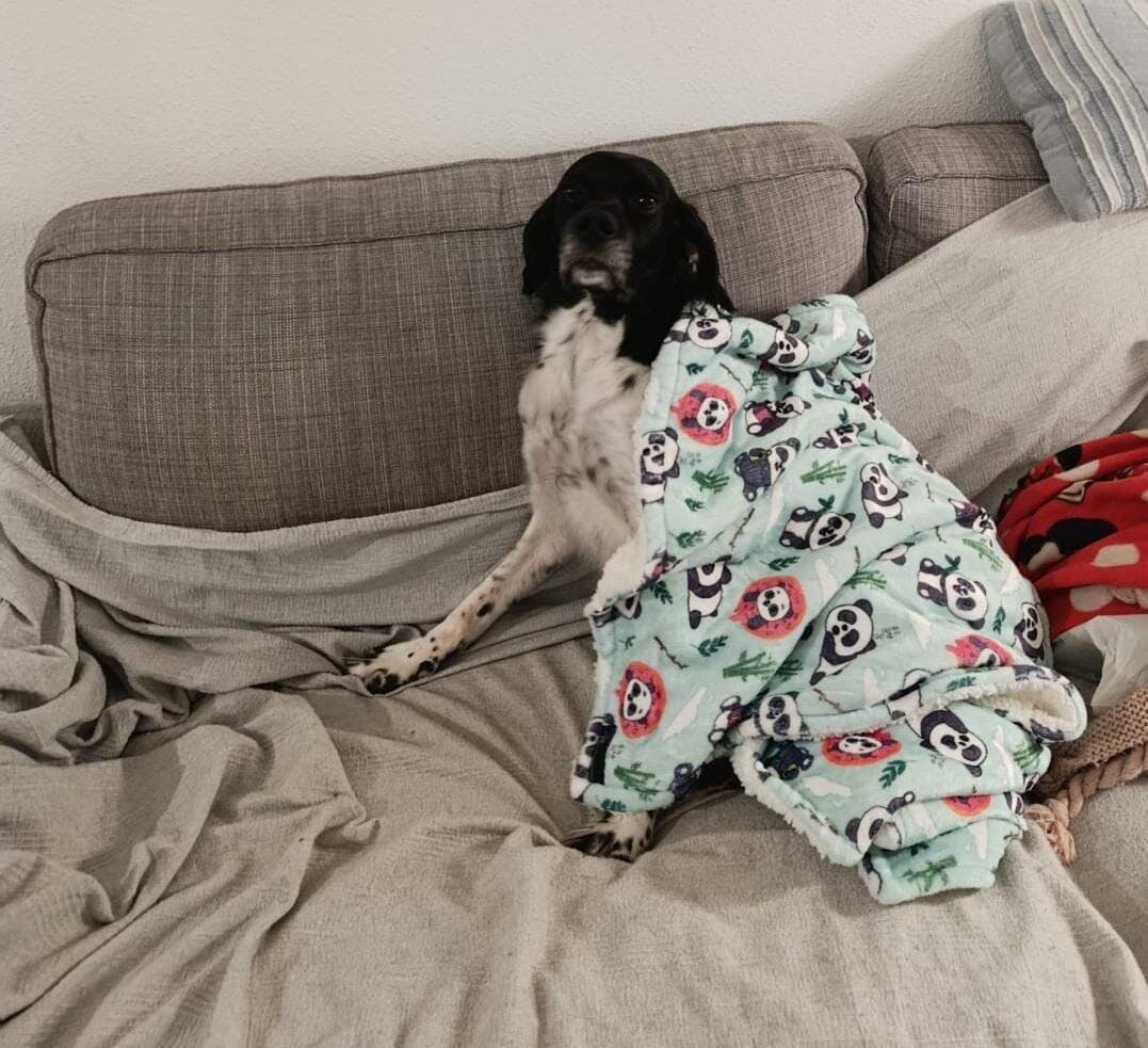 New blanket from the Sweet Pandas collection that you are loving so much, so we are happy to show you how you asked us to create this beautiful blanket for your furry friends. It is designed and finished on the inside with sheepskin fabric, this way your furry friend will enjoy a very soft touch on the front, where our design of our panda friends is located. You will also see that your little treasure will be happy with the warmth it will give him and you will see that he will not want to take off from it, thanks to its materials. Handmade blankets. Perfect for: