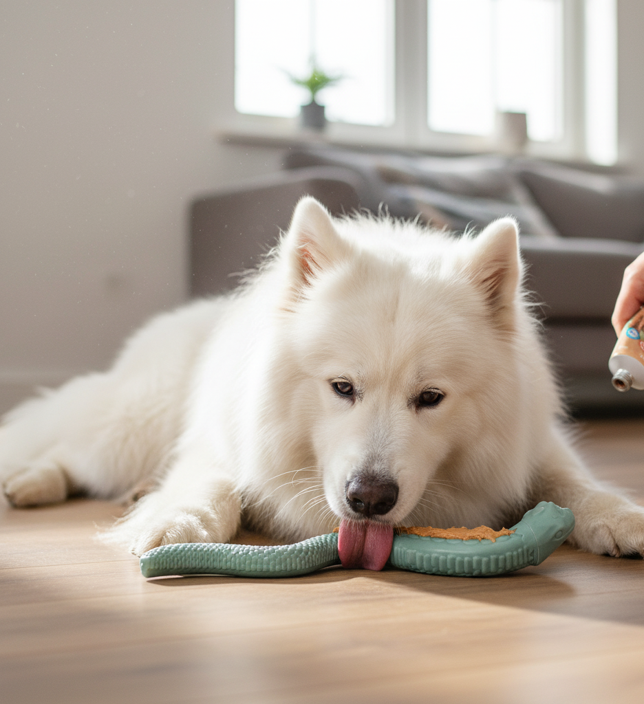 Anti-Estrés Natural: El lamido es una actividad relajante para los perros, ayudando a reducir la ansiedad y el aburrimiento.