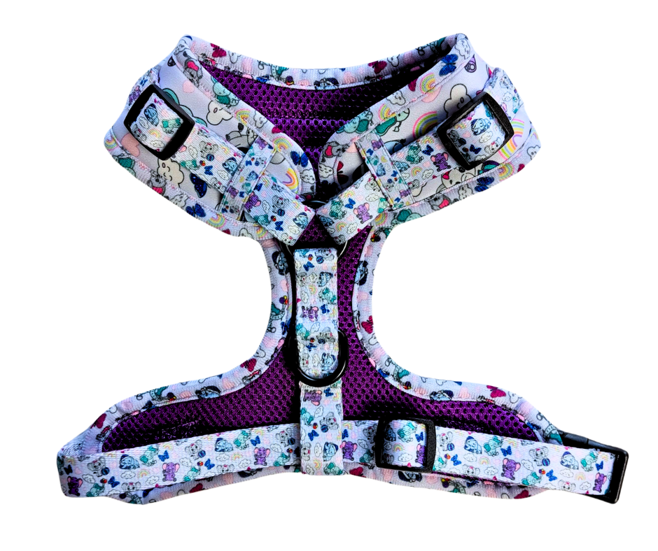 Tengo varios arneses y este es uno de mis favoritos. En primer lugar es precioso, eso se ve. Pero lo más importante es lo bien que se ajusta, no se mueve absolutamente nada de la parte del lomo, como otros que se van desaflojando a medida que el perro va caminando. Sin duda, lo recomiendo.