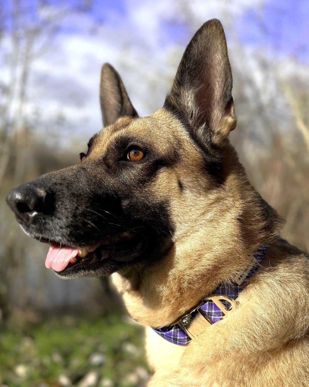 Con un sofisticado diseño tartán en tonos lavanda, con lineas sesgada en blanco y negro, nuestro collar combina la elegancia del estilo con hebilla en efecto espejo y diseño tartán con la resistencia que tu pequeño o gran peludo necesita para sus aventuras diarias.