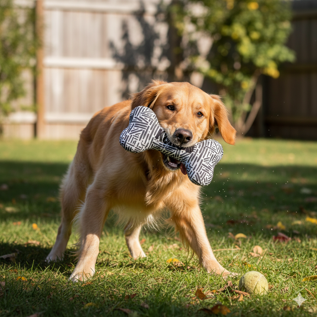 📐 Tamaño Ideal: Con unas dimensiones generosas de 25 cm de largo por 12.7 cm de ancho, su forma de hueso es fácil de sujetar, lanzar y atrapar, haciéndolo perfecto para juegos interactivos o momentos de diversión individual.